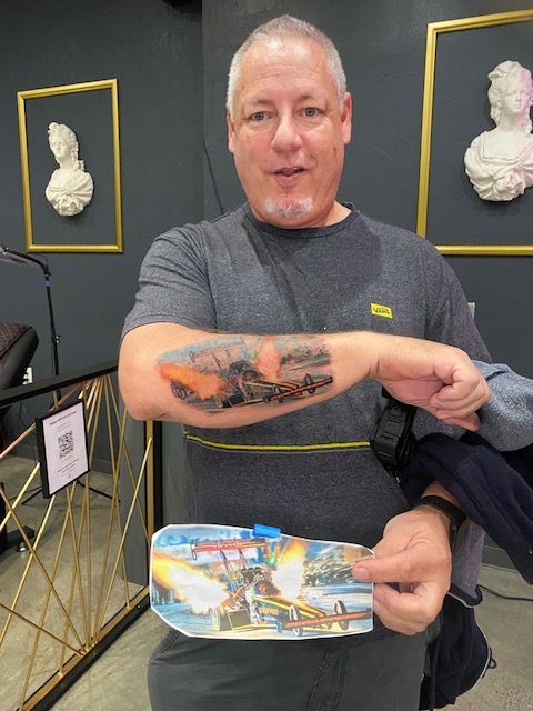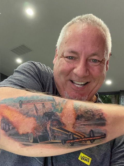 A special thanks to Artists ORÇUN GÜNBEKLER and crappers Nhra Top fuel car tattoo done by Cleopatra Ink Sacramento